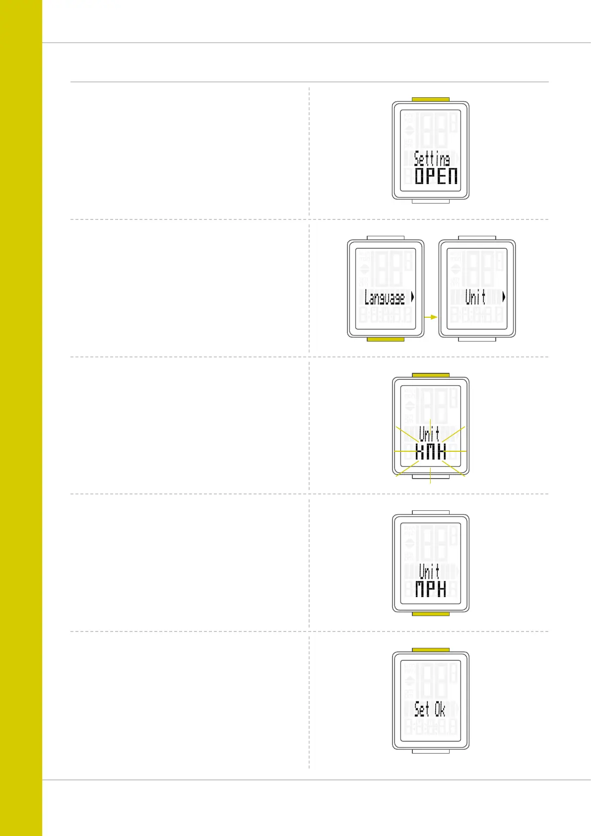 Press the BIKE button to scroll to the setting for the unit.