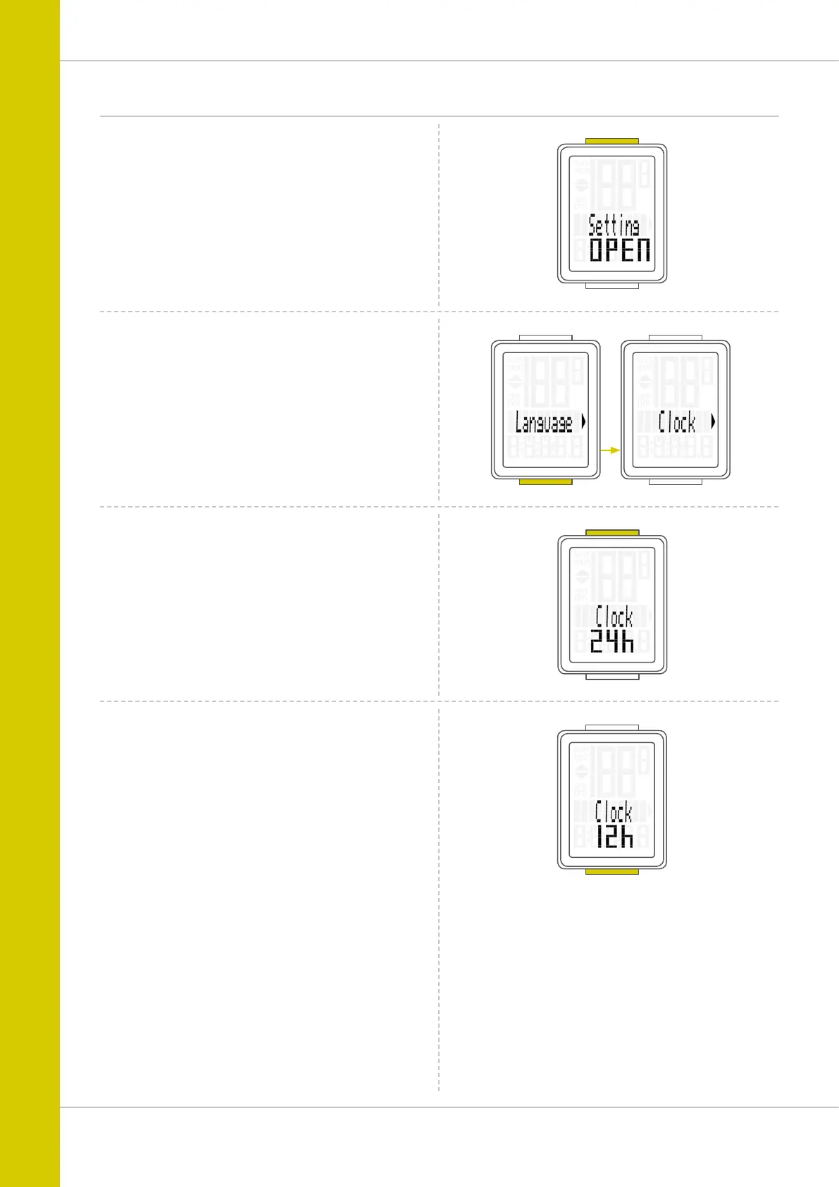 Press the BIKE button to scroll to the setting for the time.