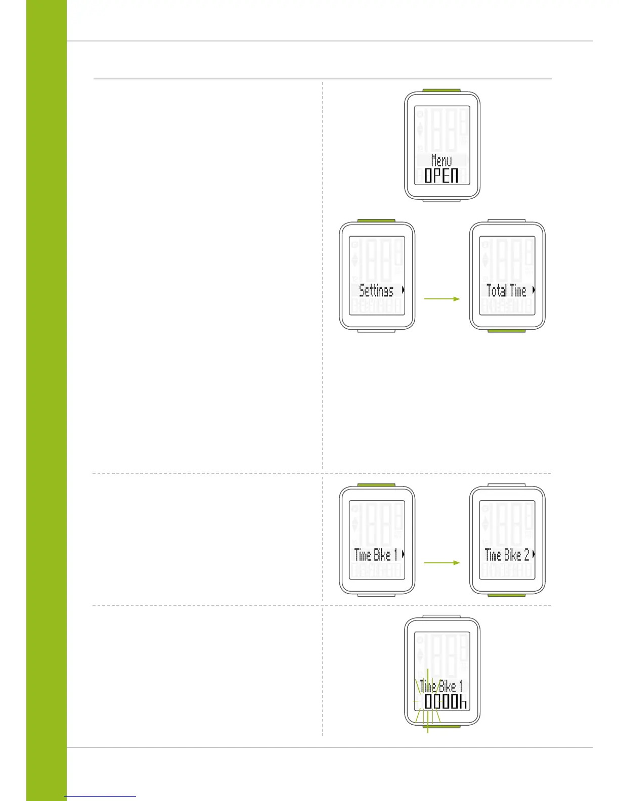 Press the BIKE button to switch from Totals to Settings.
