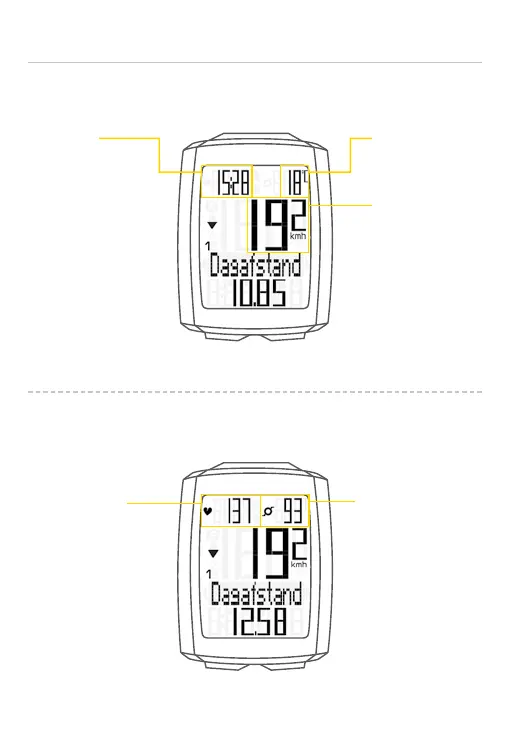 Weergave met geactiveerde polsslag + trapfrequentie optie: