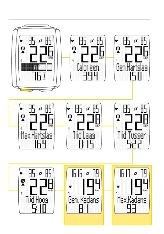 (bij geactiveerde polsslag/trapfrequentie optie)