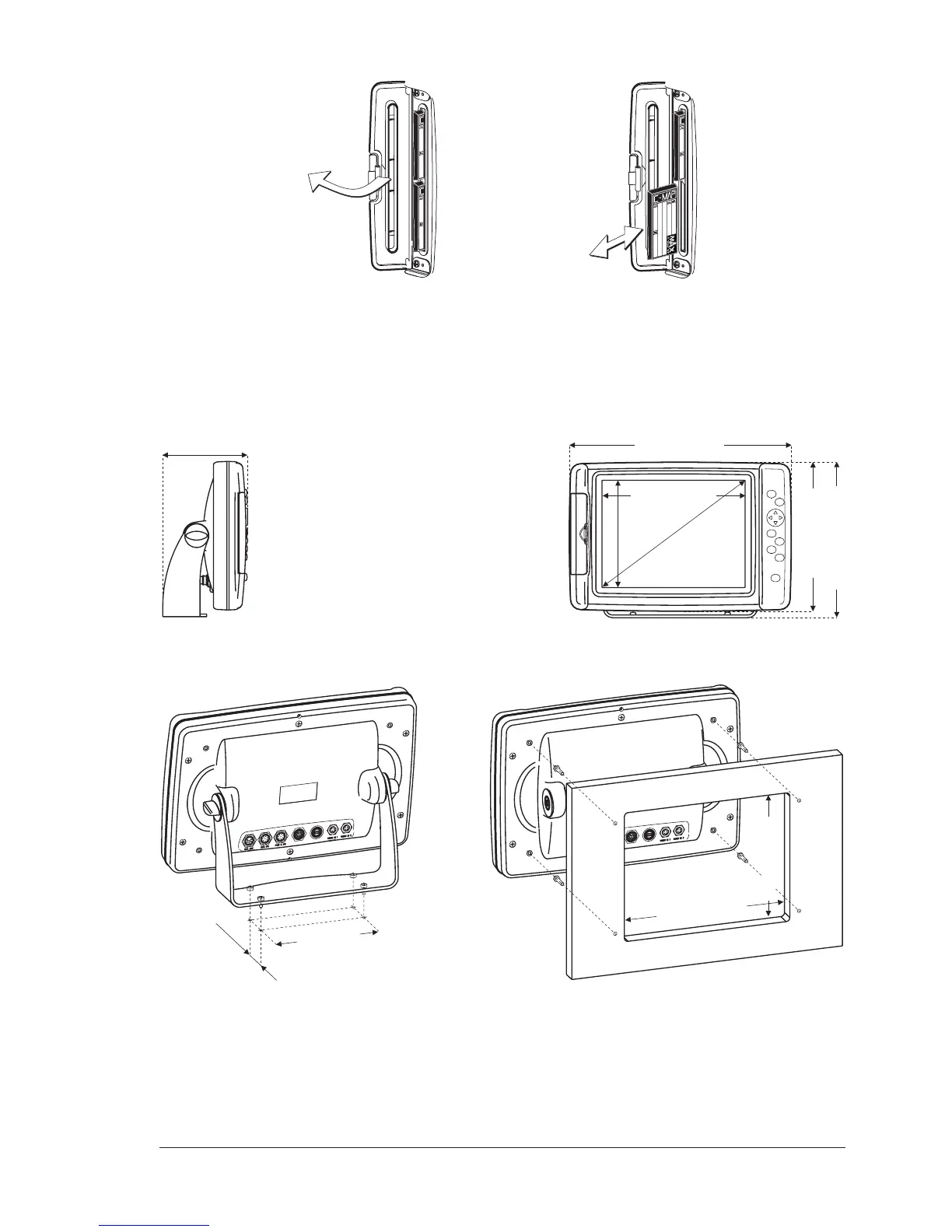 VDO MAP 11csE Plus GPS - Removing the C-CARD; Chart Plotter Dimensions; Installation and Removing