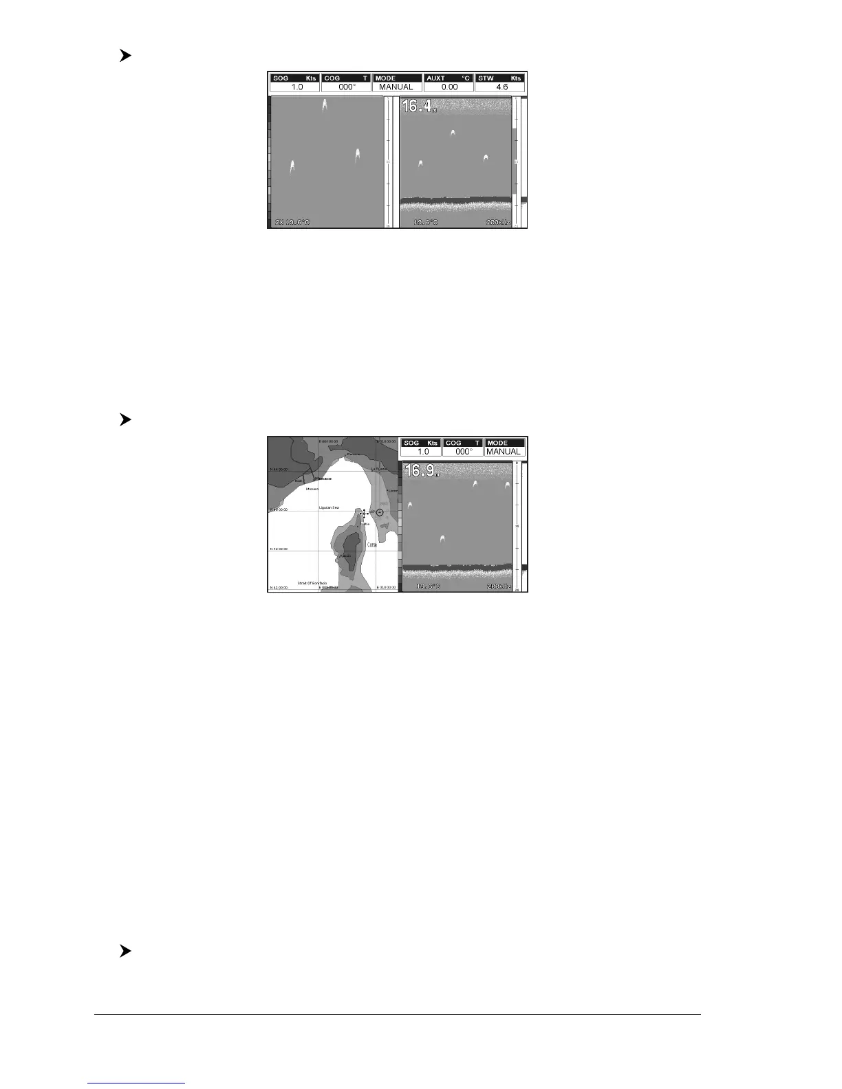 ♦ if the focus (the active window) in on the Fish Finder, the Fish Finder