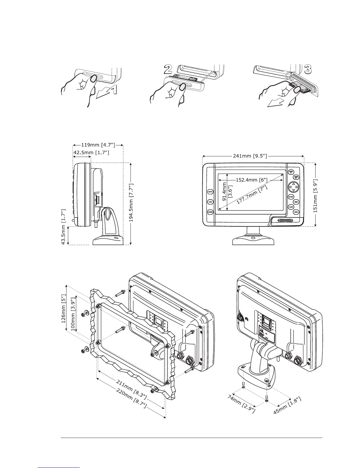 VDO MAP 11csE Plus GPS - Removing the C-CARD; Chart Plotter Dimensions; Installation and Removing