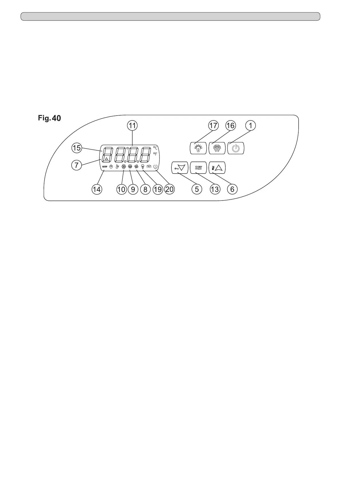 - led FAN (8) allumé lorsque le ventilateur de l’évaporateur est en fonction.