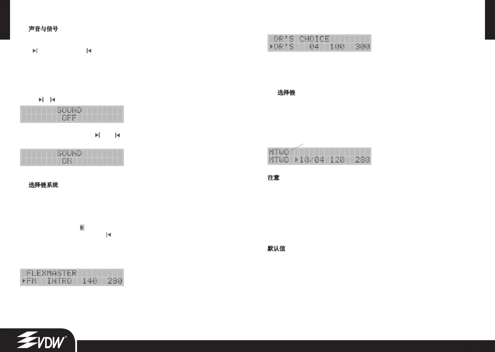 同时按 和 : 将发出双倍低音, 且下列消息将显示 1 秒钟。