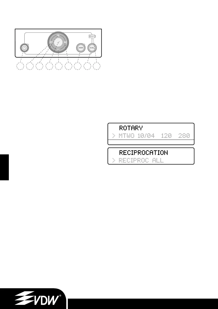 Zobrazuje zvolený režim – buď rotační nebo