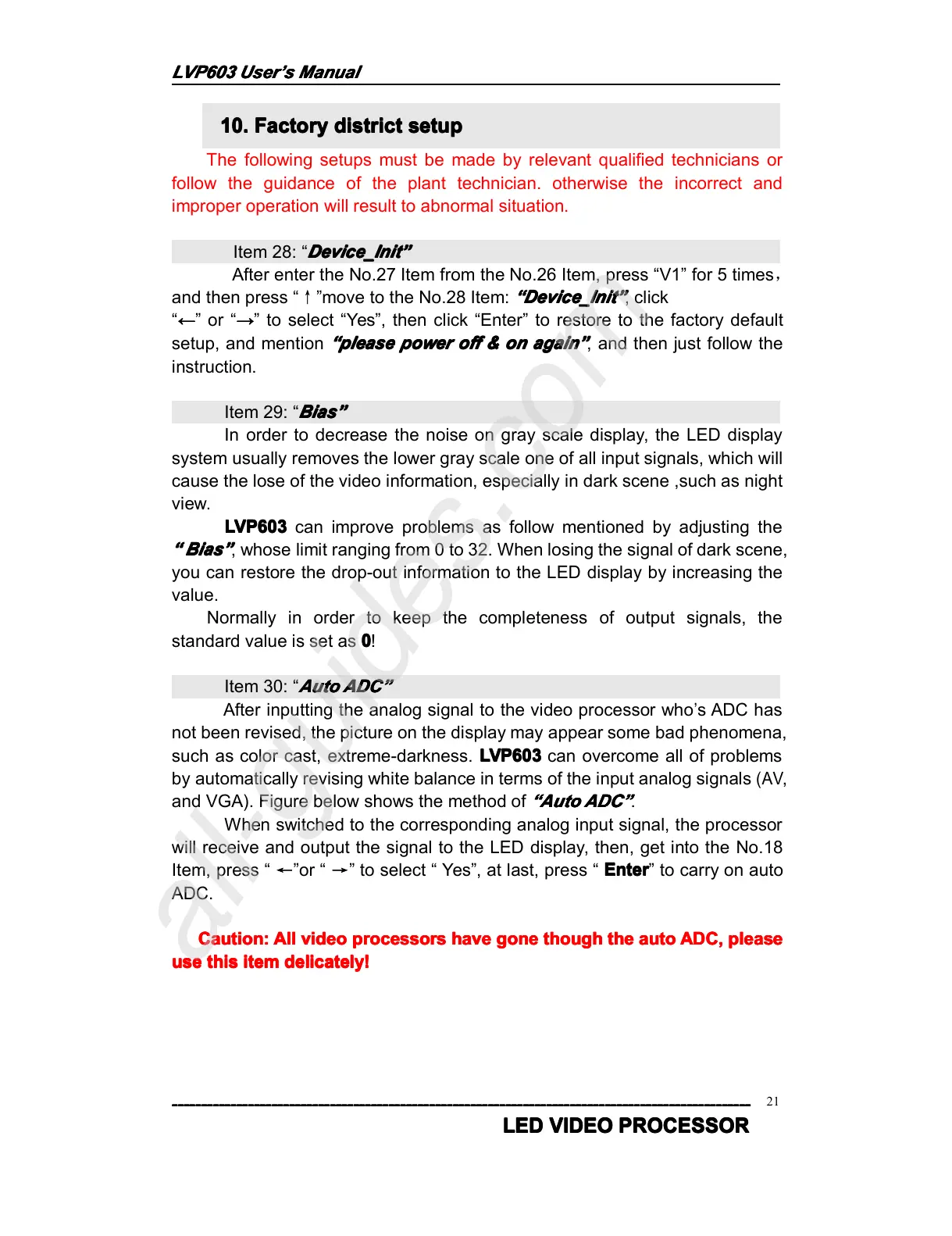 such as color cast, extreme -darkness. LVP603