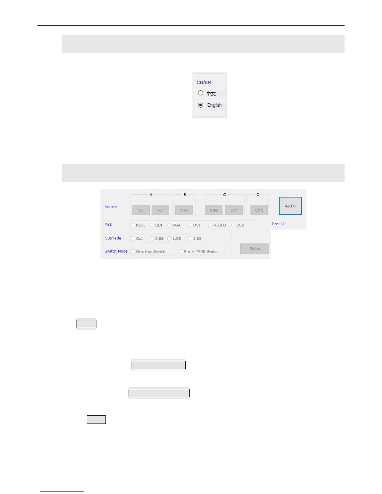 The buttons in “Source” area is corresponding to those buttons and status indicator on the