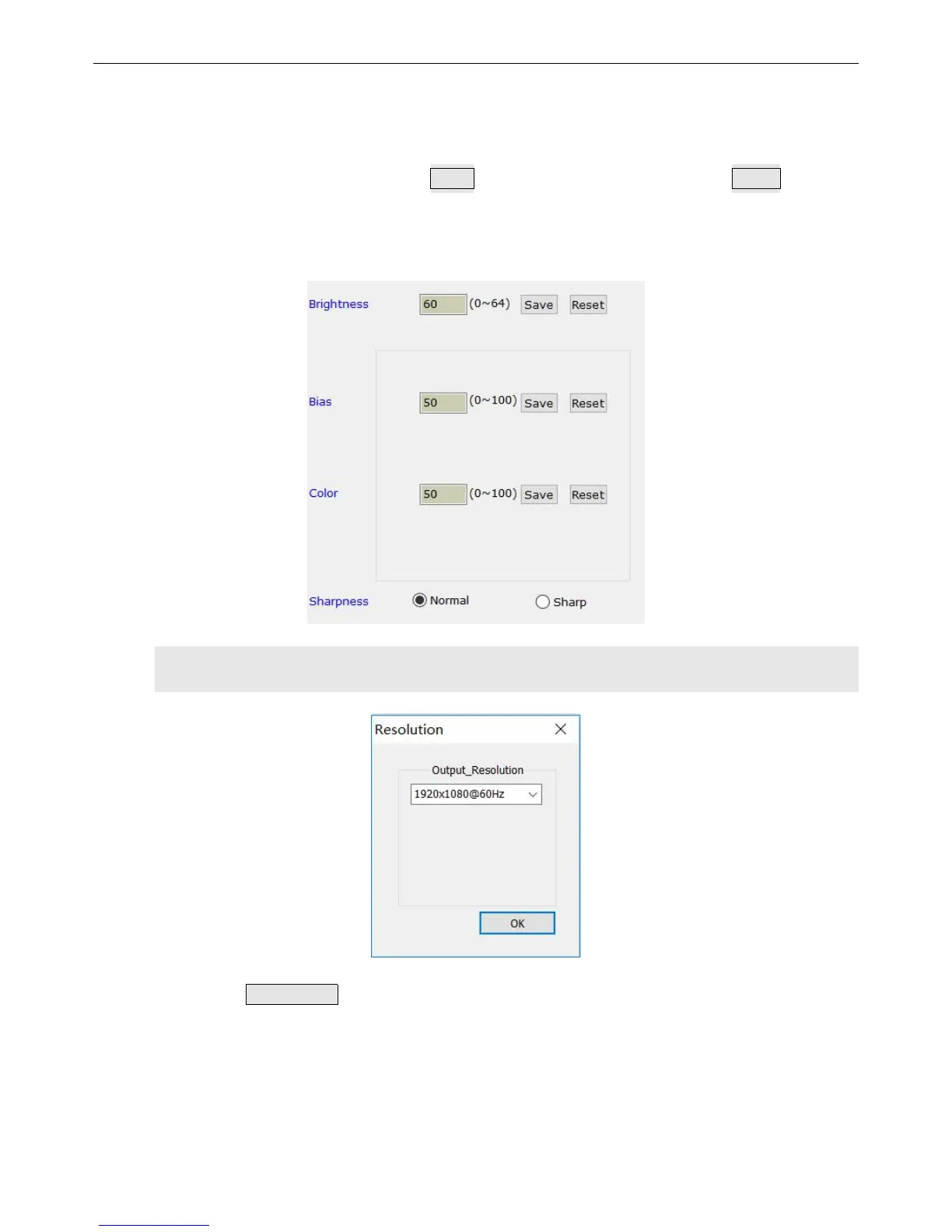 Click Resolution on the main interface of LVP300 software and this popup will