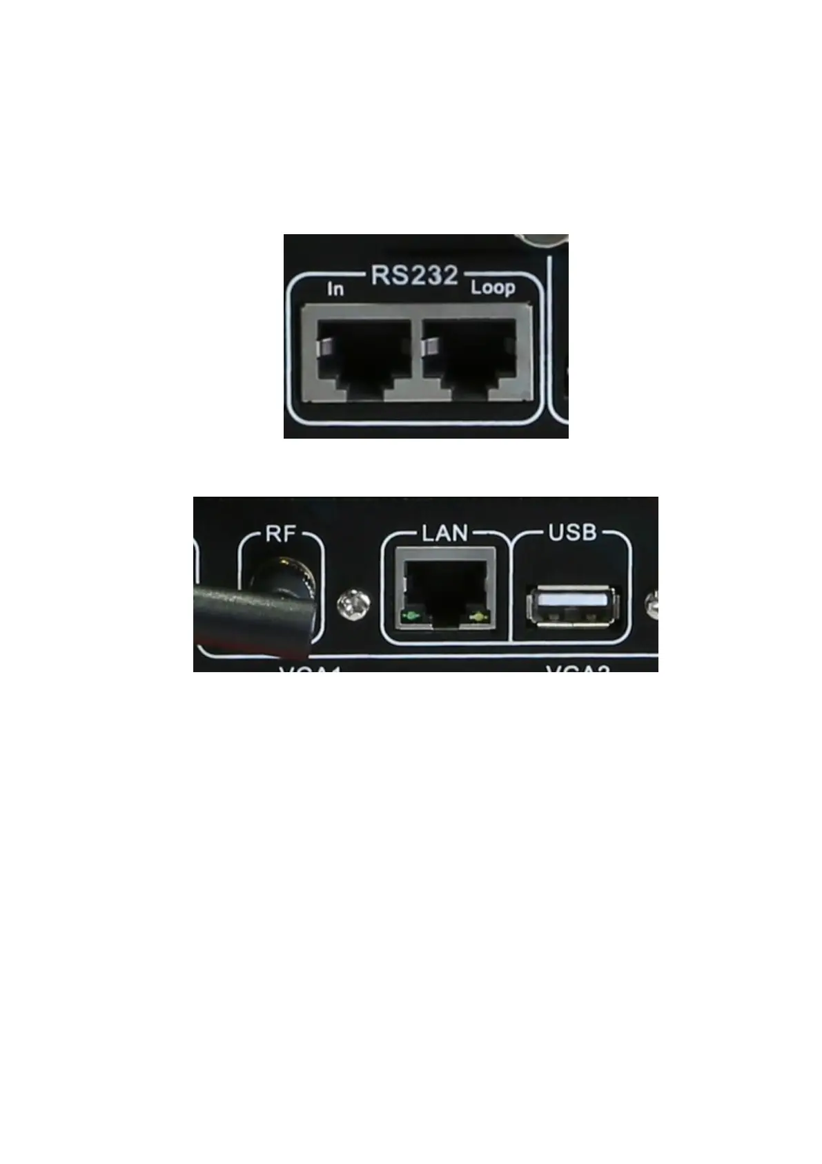 7.1. RS232: In port connects PC RS232 port ( Loop connect next LVP615 can