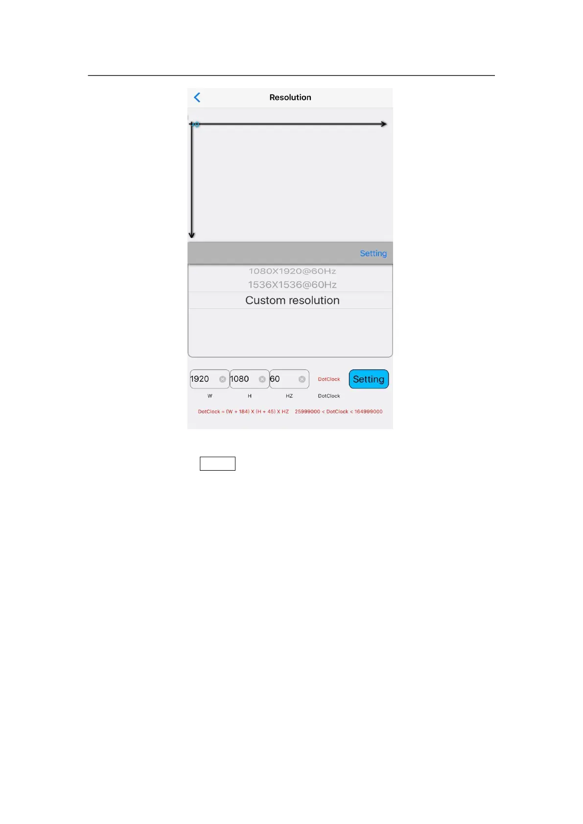 selecting custom resolution, user needs to set the corresponding