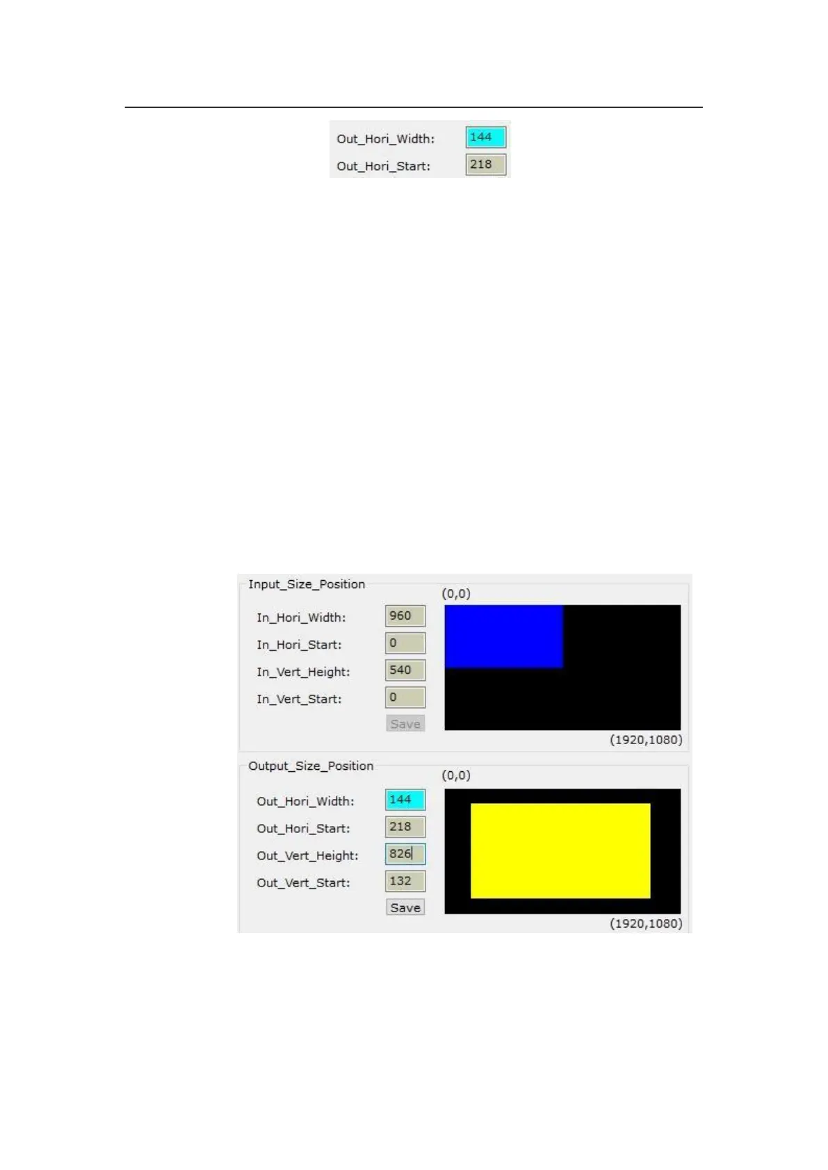 The parameters of output windows should be configured to the actual pixels of the screen