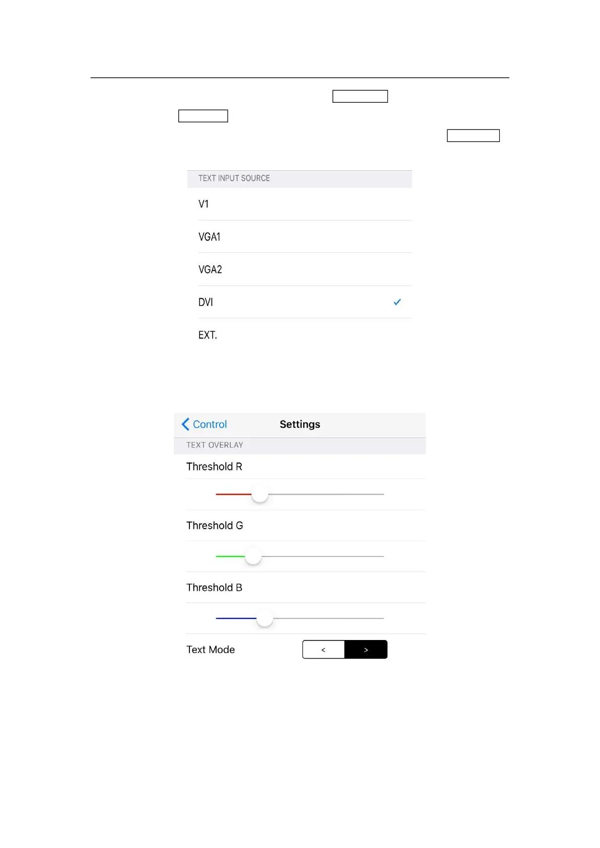 set the text threshold and other parameters, users could click in