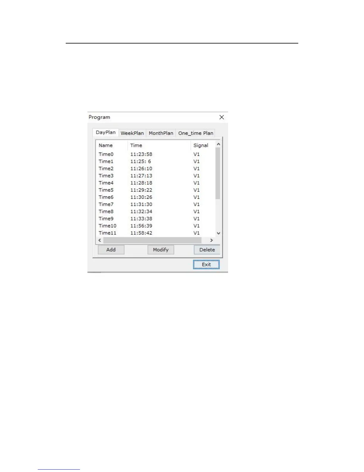In user interface click Program, appear setup interface of timer, show as the picture below: