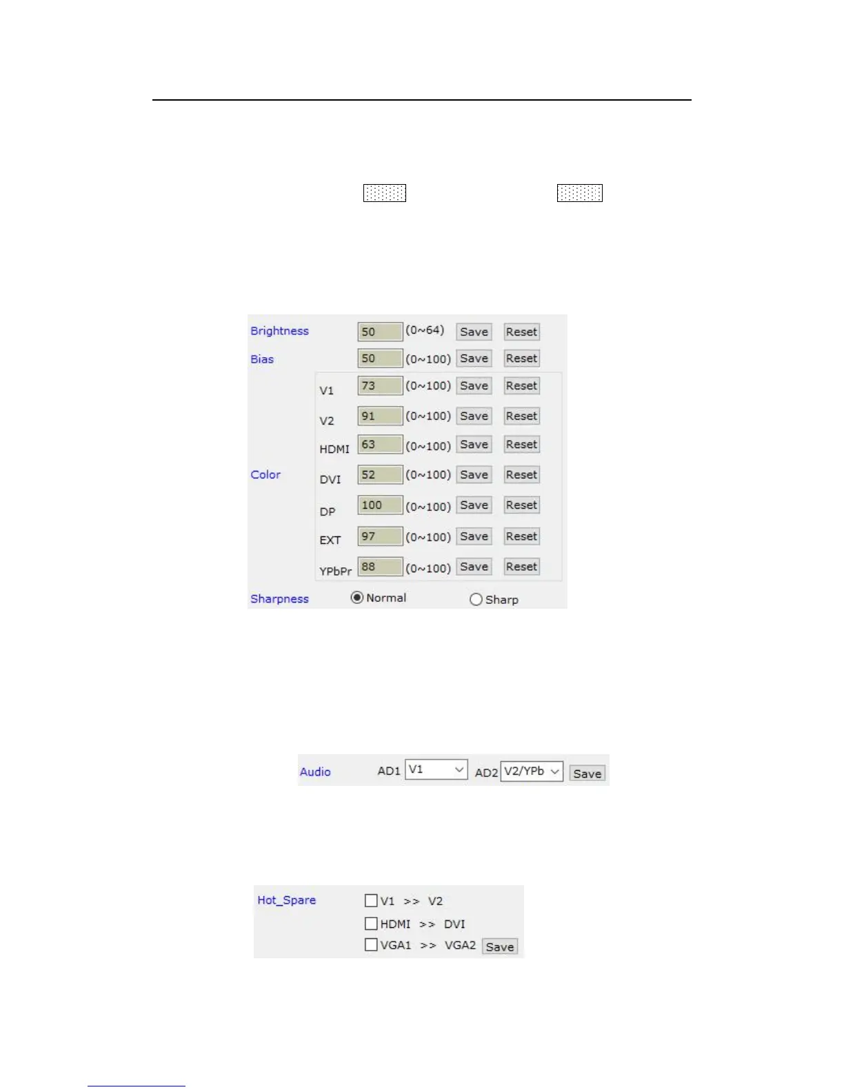 These options is used to set brightness, color, bias and sharpness of output image, after