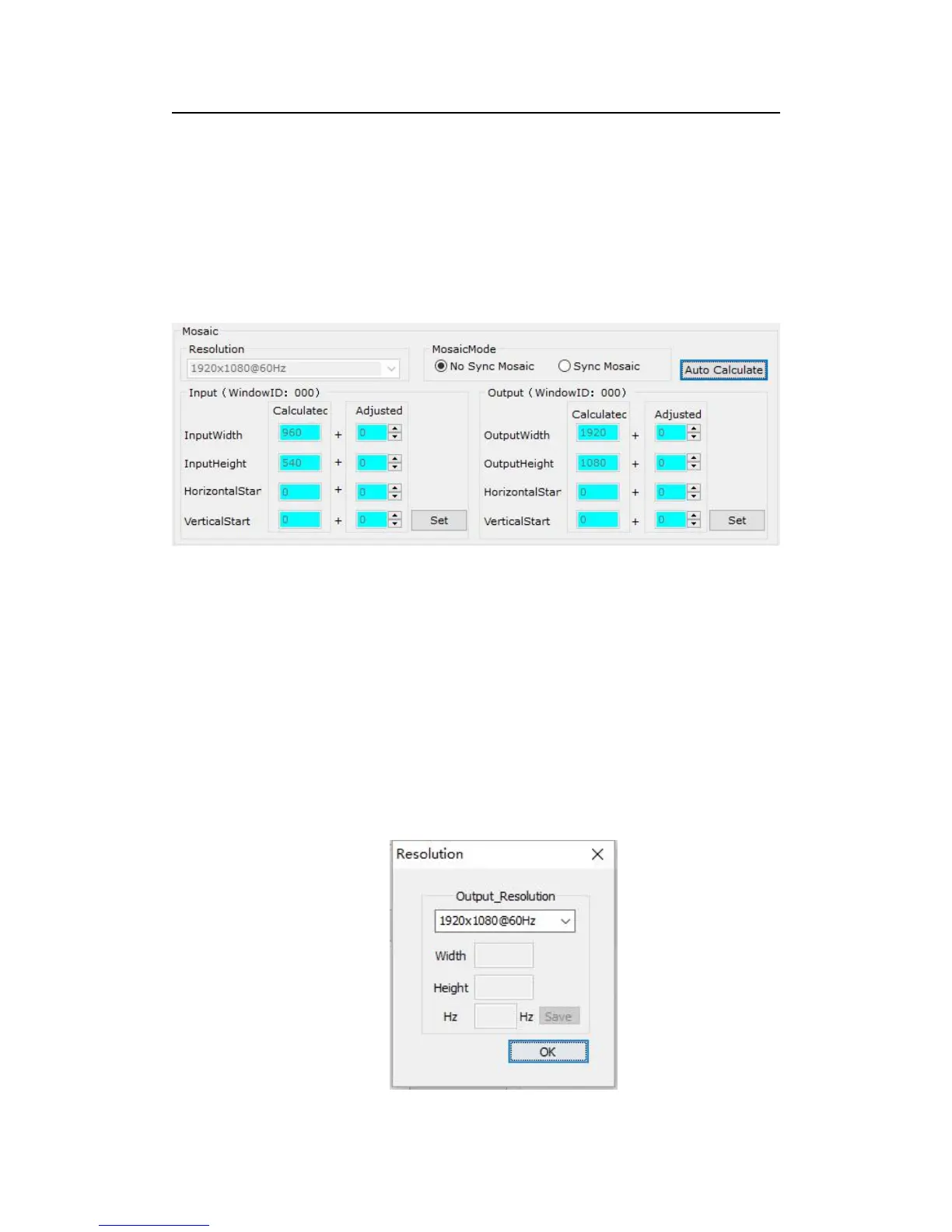 parameters of the processor, then select Mosaic mode. Complete parameters