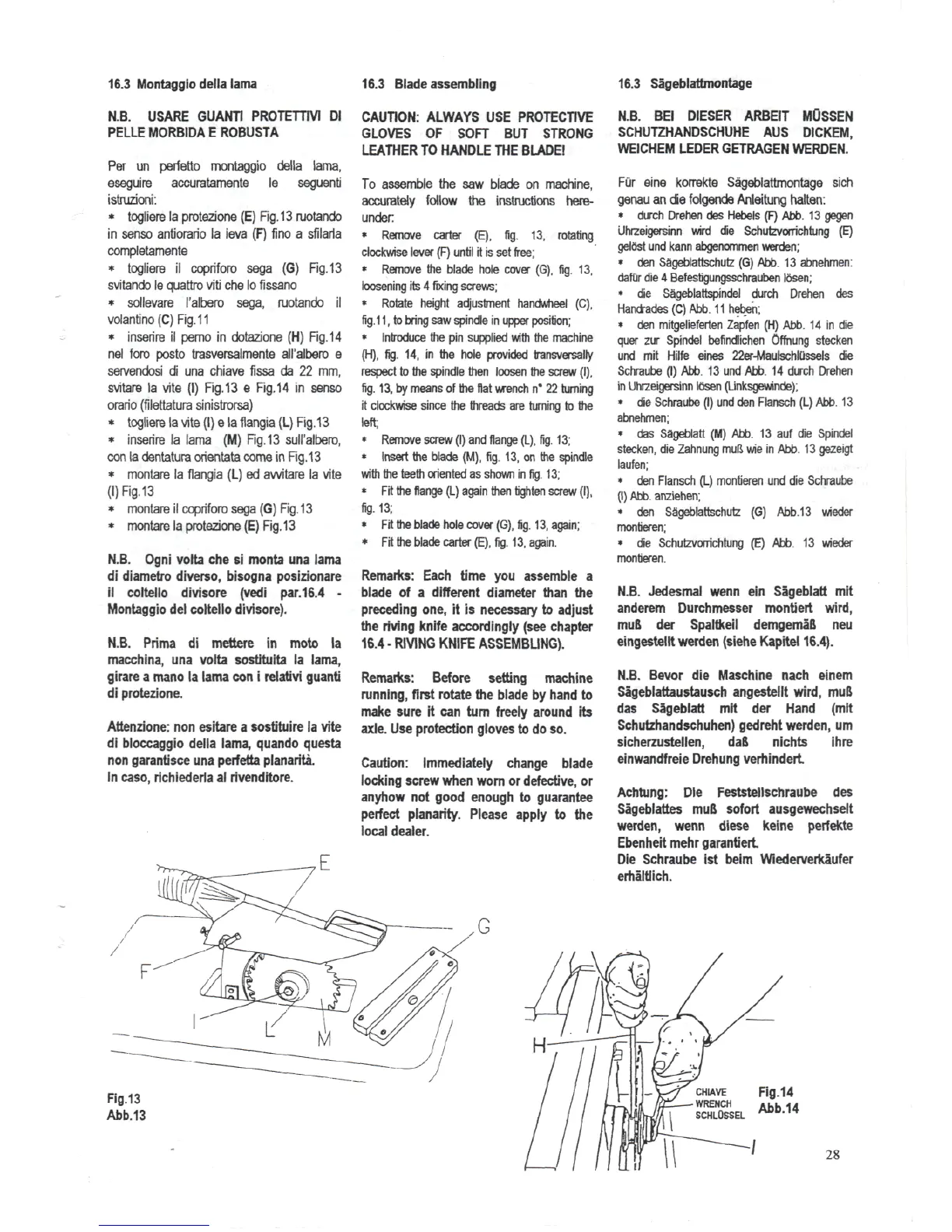 veba SC25 - Blade Assembling; Riving Knife Assembling