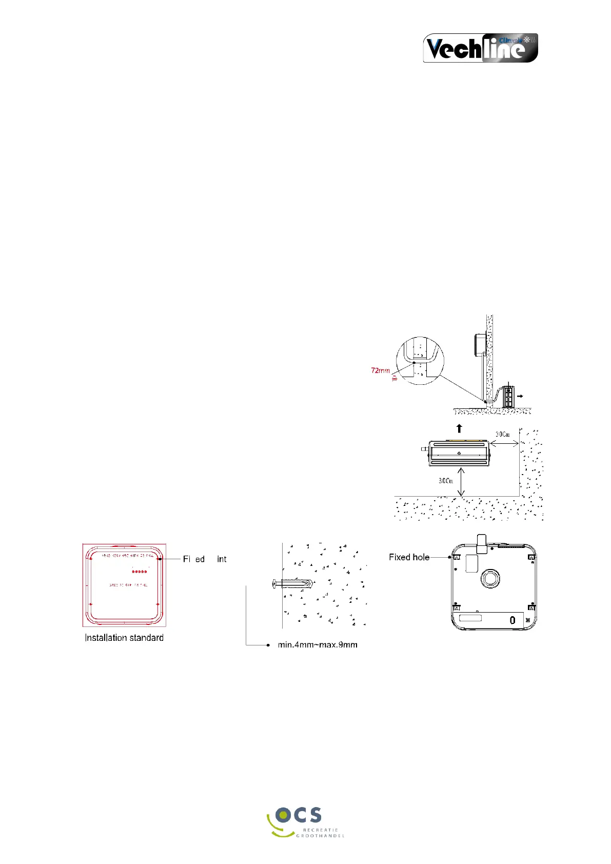 3. Bevestig schroeven op min. 4 mm ~ max. 9 mm ruimte vanaf de muur.