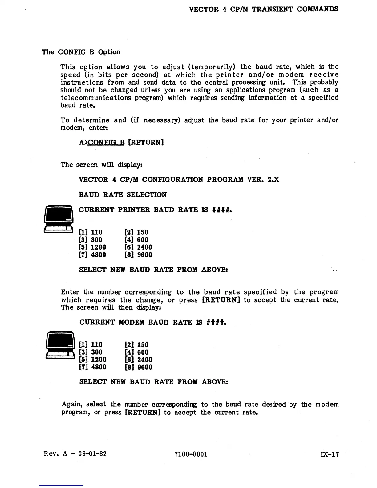 VECTOR 4 CP/M CONFIGURATION PROGRAM VER. 2.X