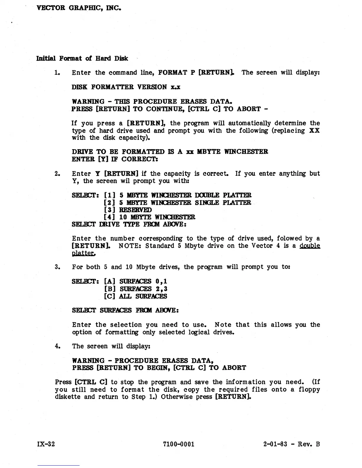 3. For both 5 and 10 Mbyte drives, the program will prompt you to: