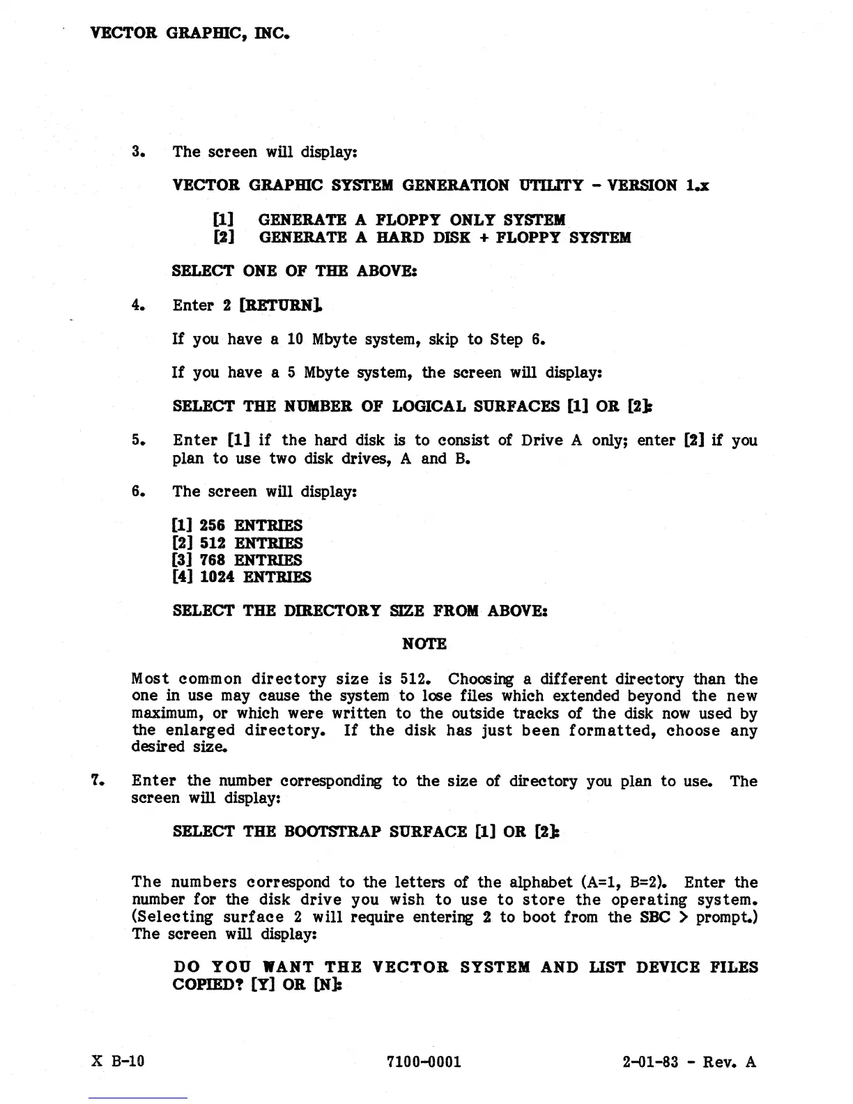 you have a 5 Mbyte system, the screen will display: