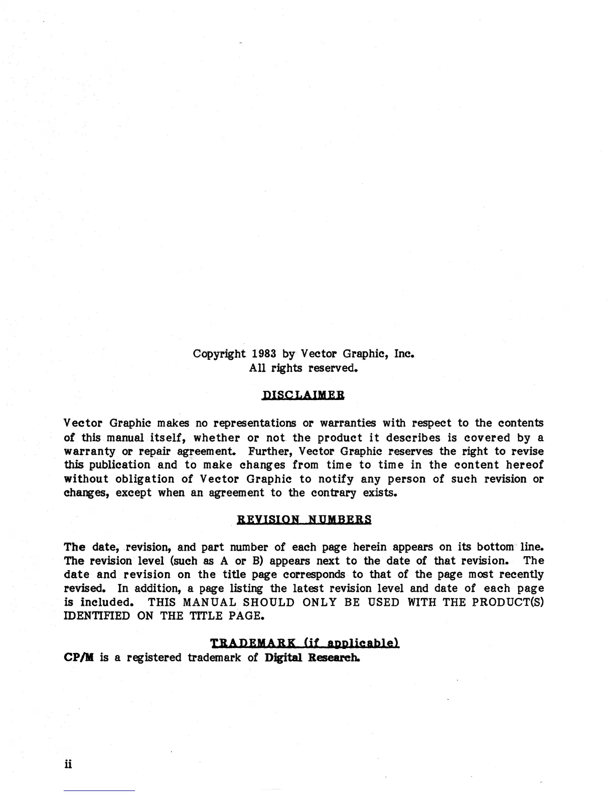 or repair agreement. Further, Vector Graphic reserves the right to revise