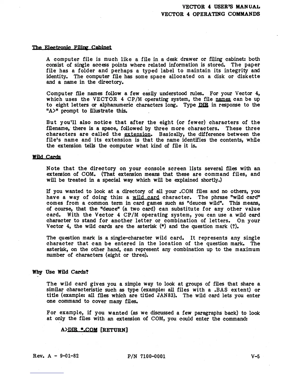 Vector 4, the wild cards are the asterisk (*) and the question mark (1).