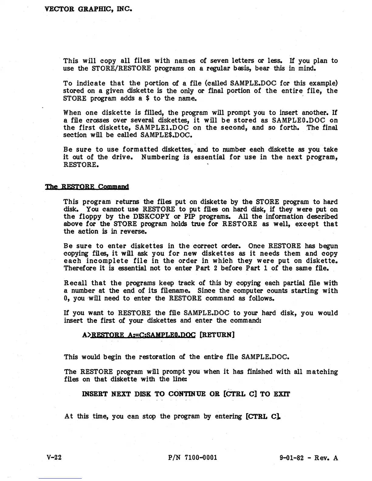 use the STORE/RESTORE programs on a regular basis, bear this in mind.