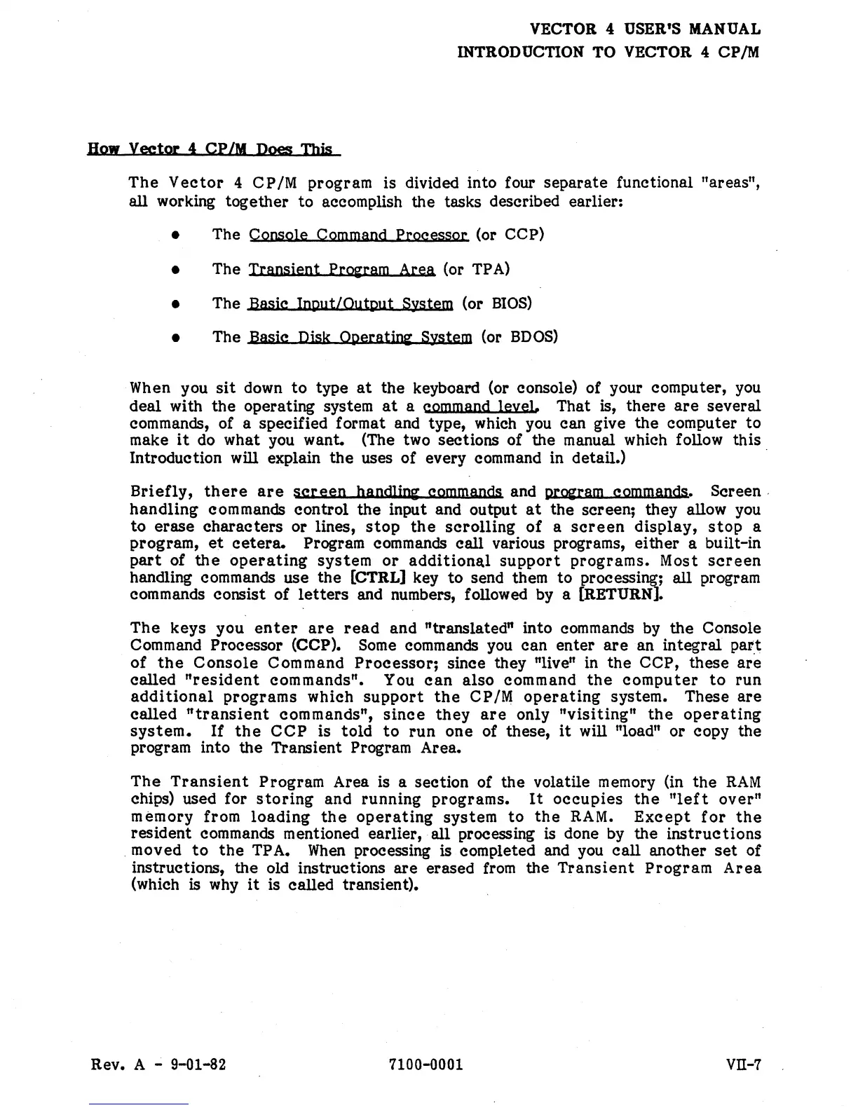 4 CP/M program is divided into four separate functional "areas",