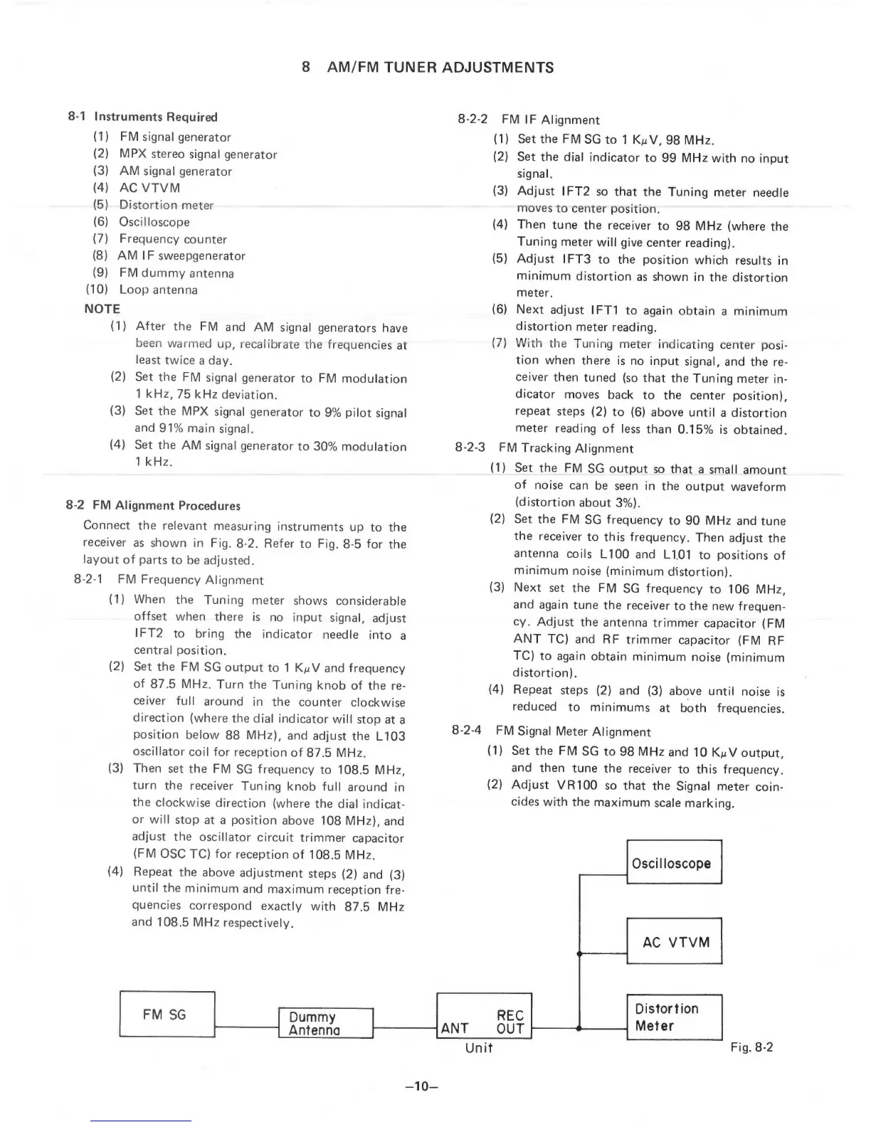 Vector Research VR-5000 - AM;FM Tuner Adjustments; Instruments Required; FM Alignment Procedures