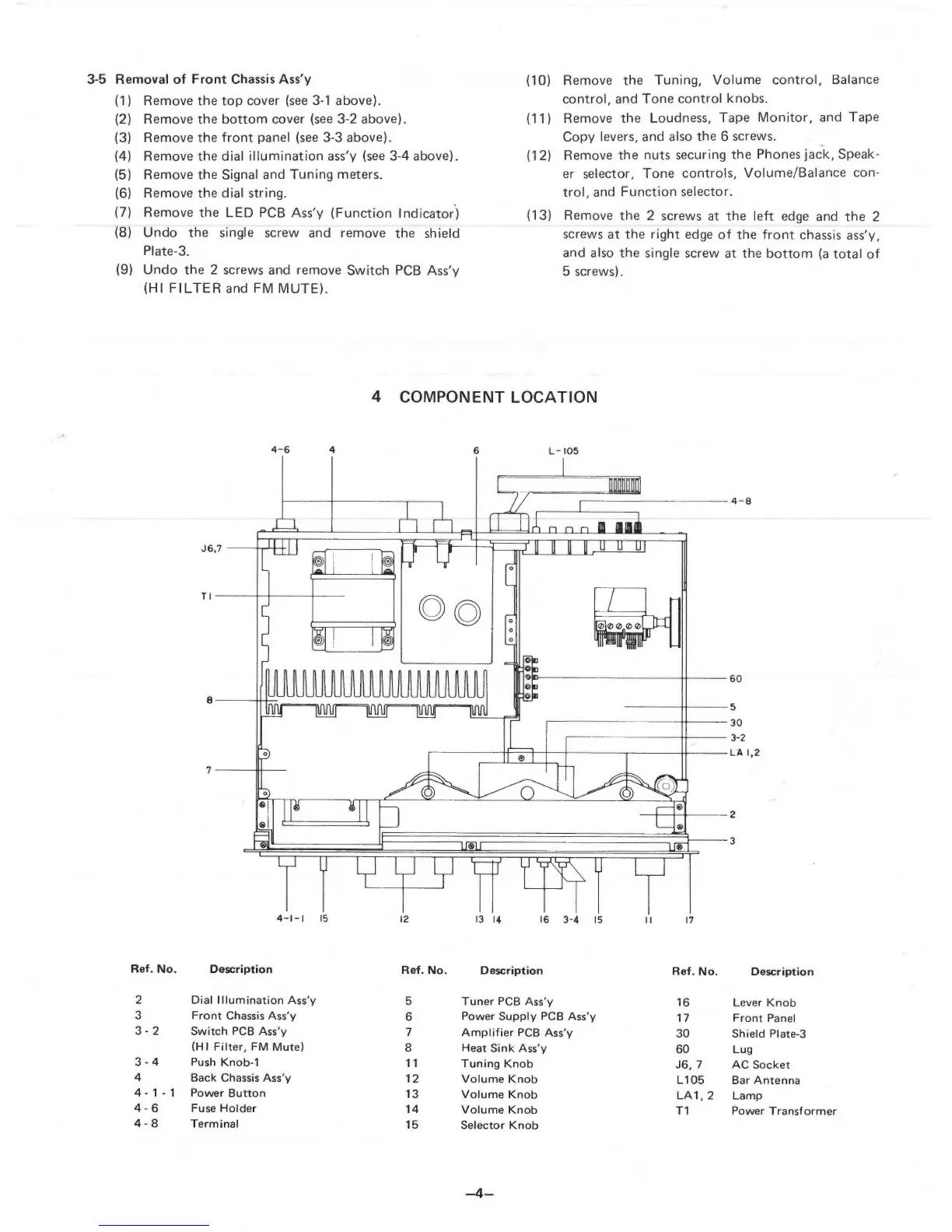 Vector Research VR-5000 - Removal of Front Chassis Assy; Component Location