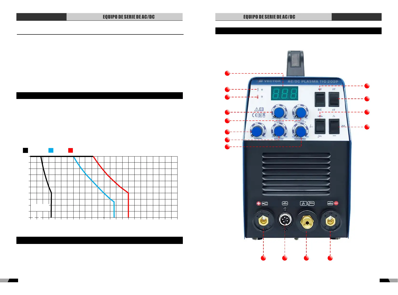 de Potencia de Soldadura está diseñada para operar 40% del ciclo de servicio, 200 amperios