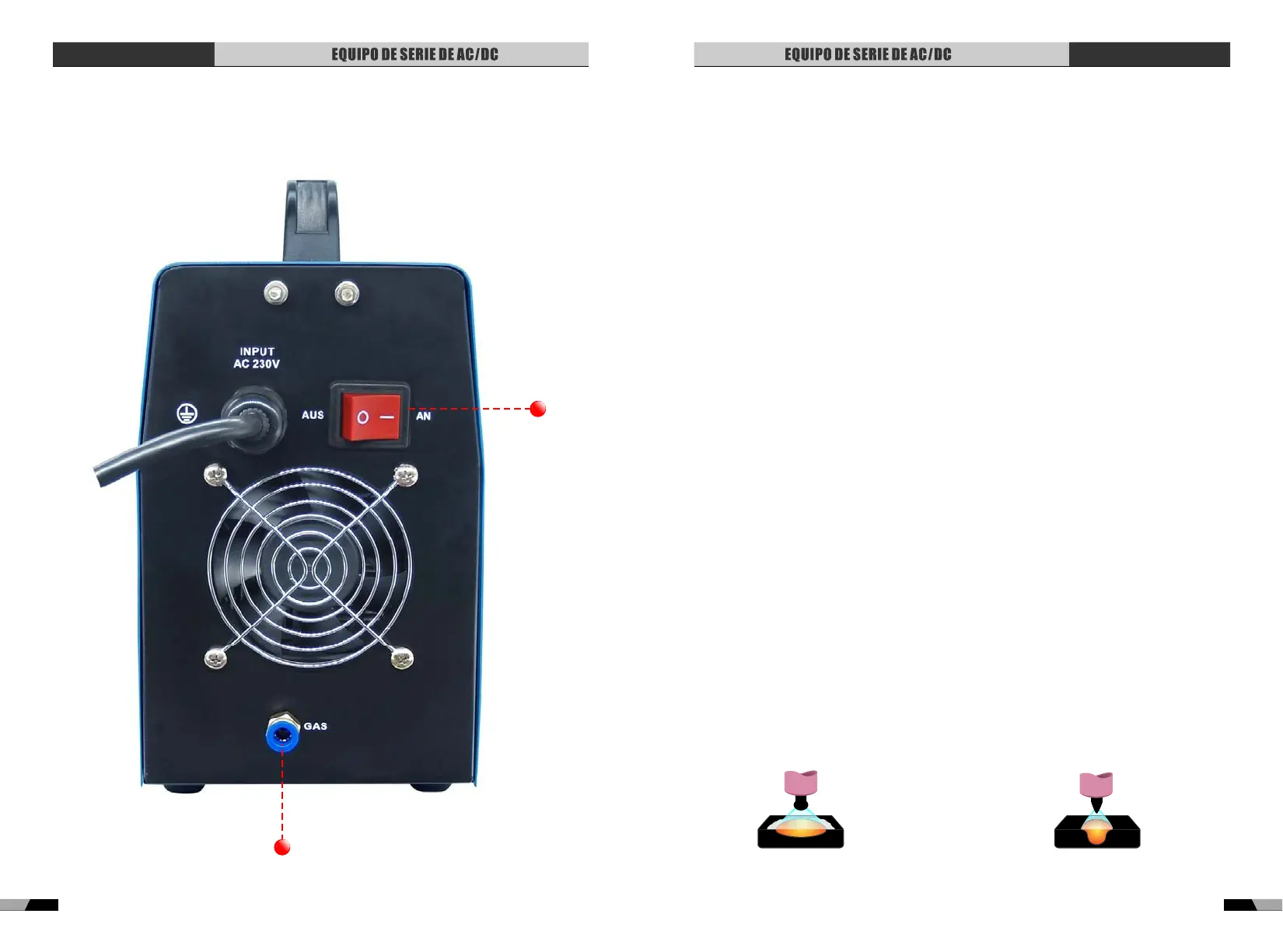 los lados y frente al charco de soldadura. La balanza CA debe ser ajustada de