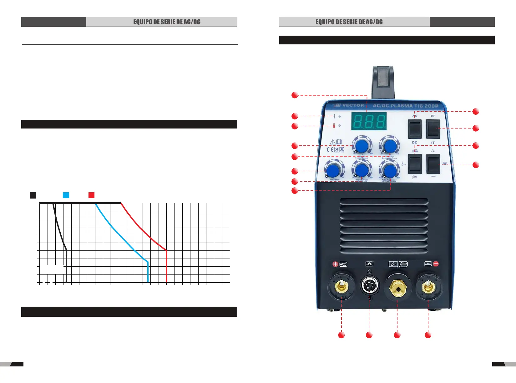 de Potencia de Soldadura está diseñada para operar 40% del ciclo de servicio, 200 amperios