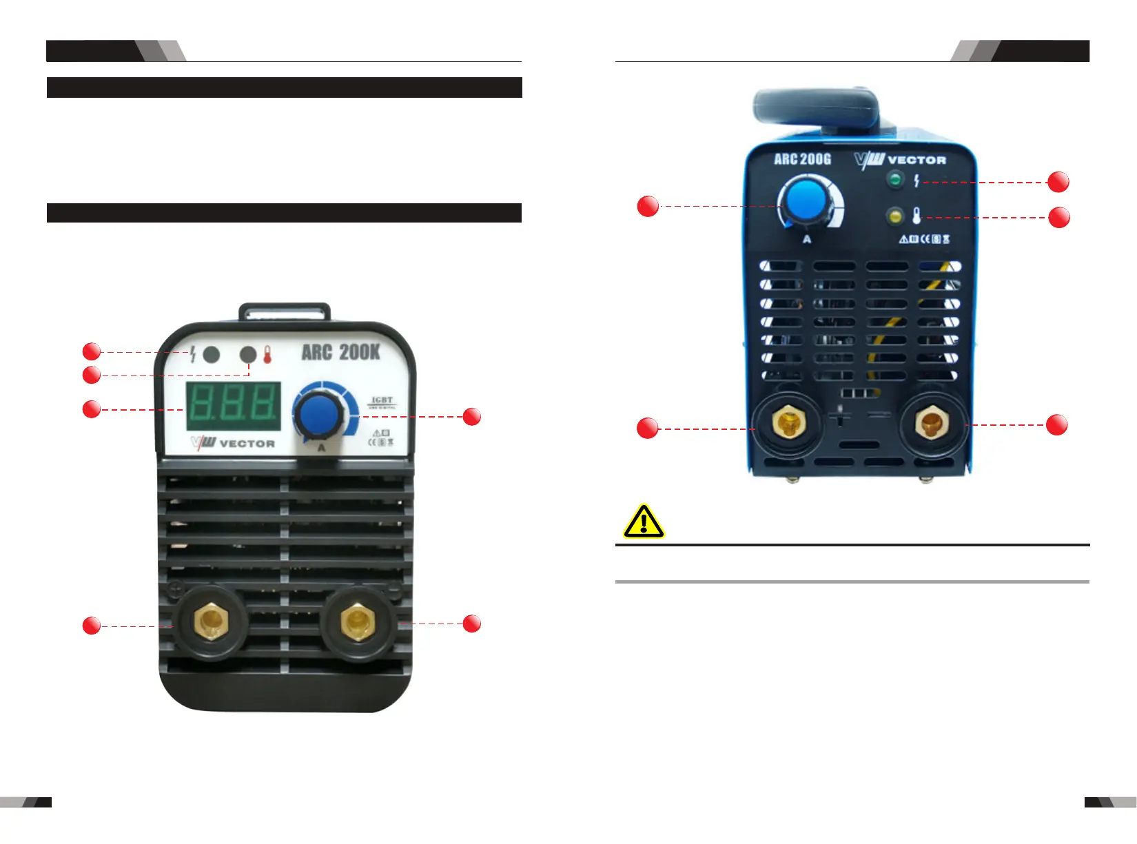 This welding power source is protected by a self resetting thermostat. The indicator will