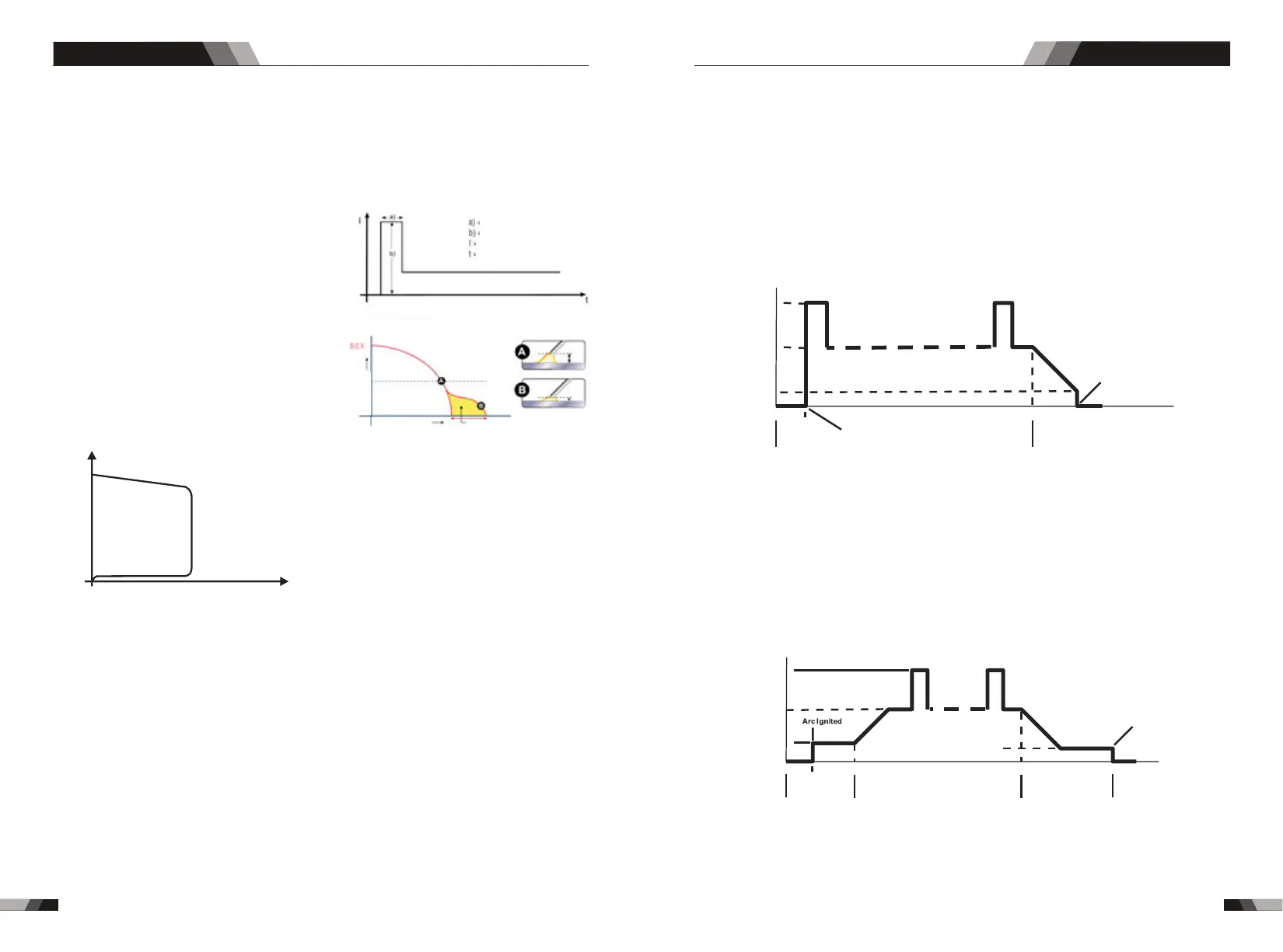 Beim Einstellen des Programms beim Gasvorlauf, Stromanstieg, Stromabsenkung und