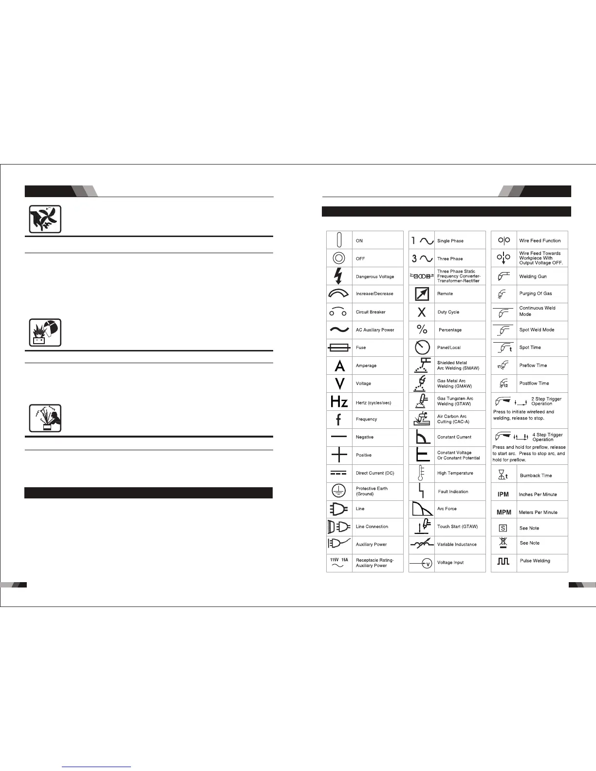 4. Do not use welder to charge batteries or jump start vehicles.