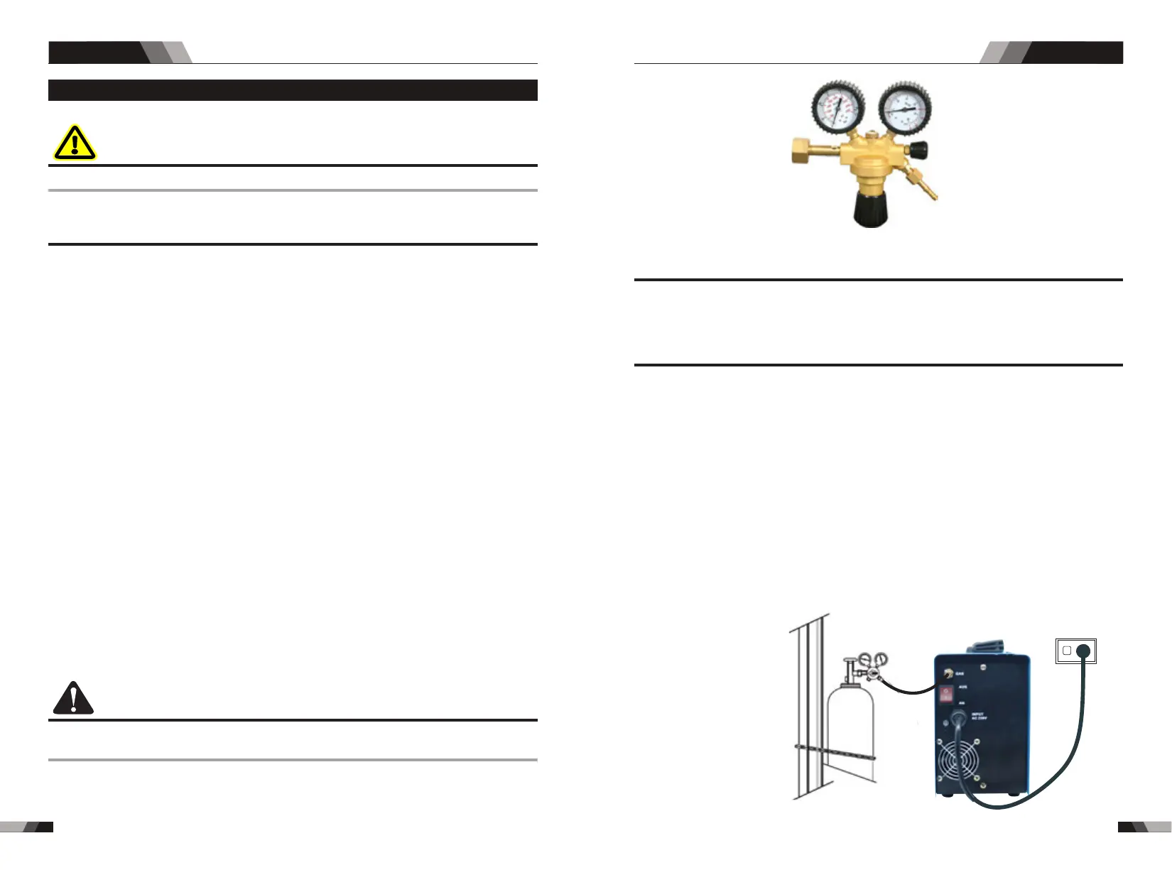 the outlet gauge. (Welding power source must be triggered) Close the valves after the pressure