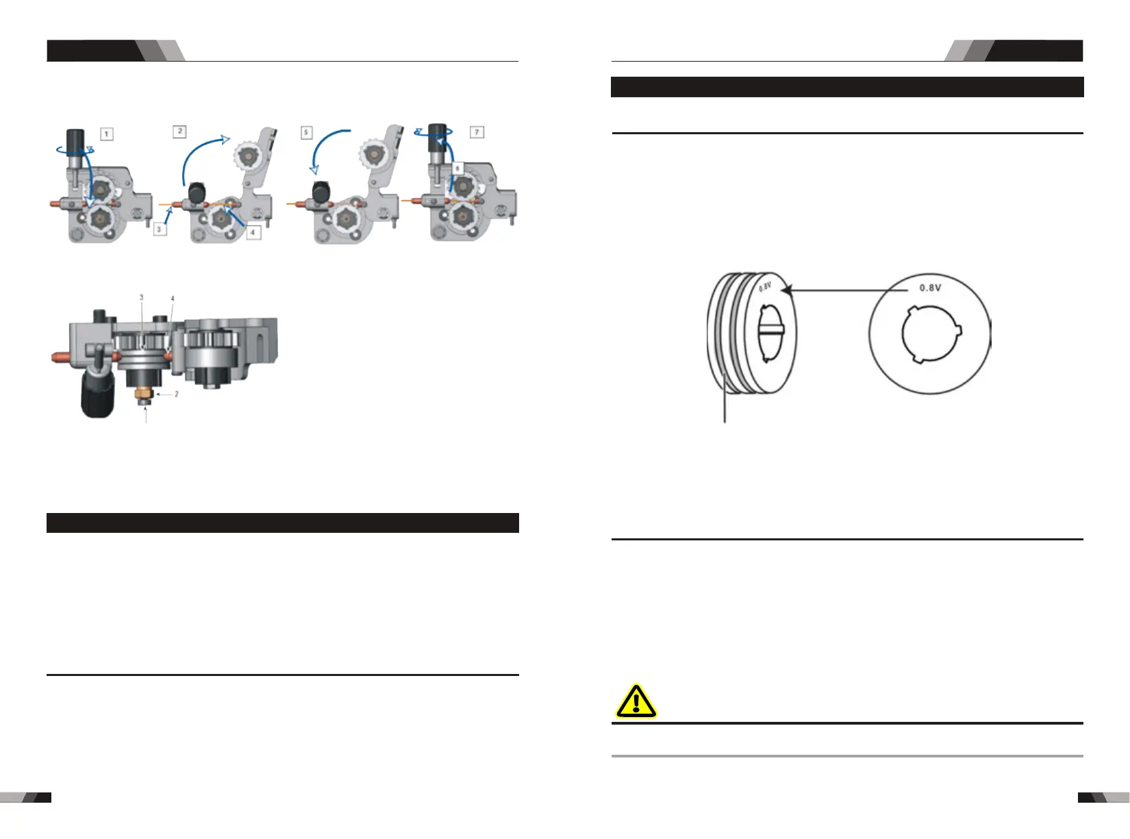 To ensure proper wire feed, the groove closest to the motor must match the electrode wire