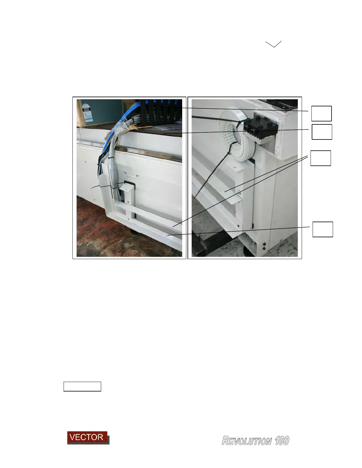 The X axis cable chain (22) must be removed from it’s transportation position on top
