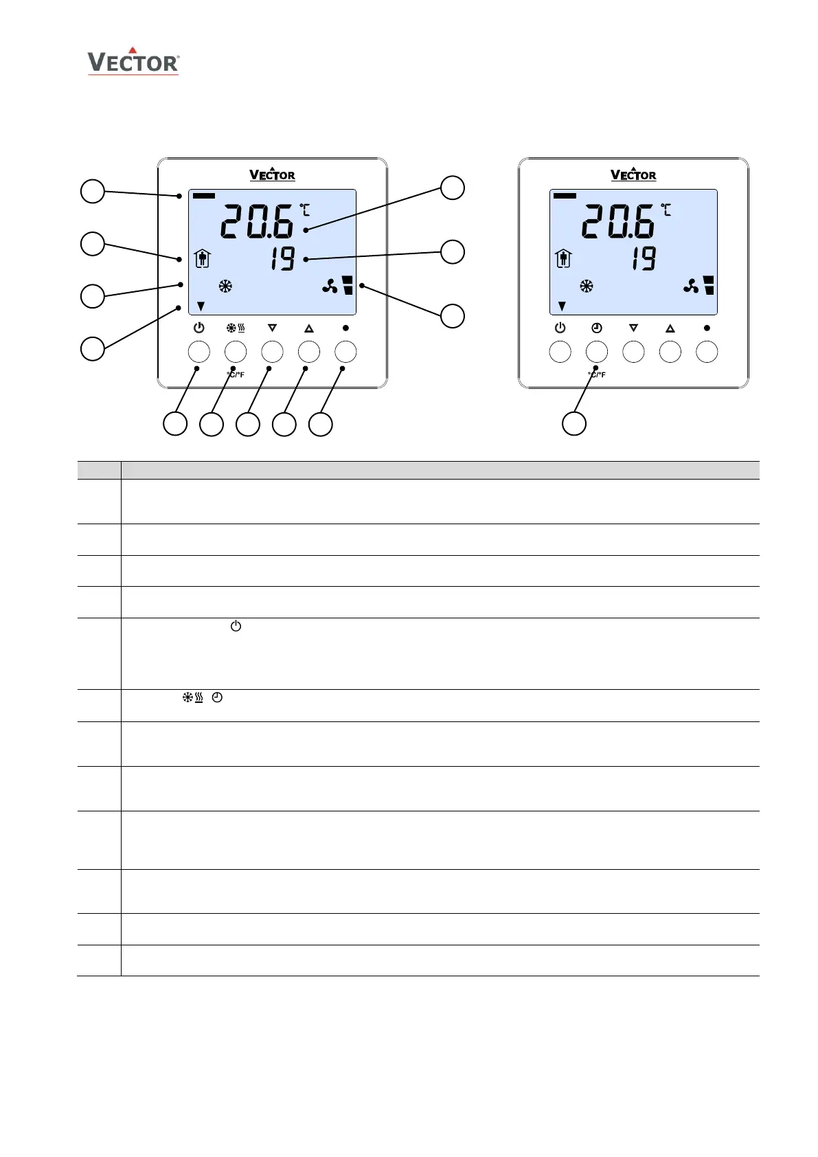 - Press < 2 sec.: Toggle OCCUPIED/UNOCCUPIED mode or switch from OFF to ON