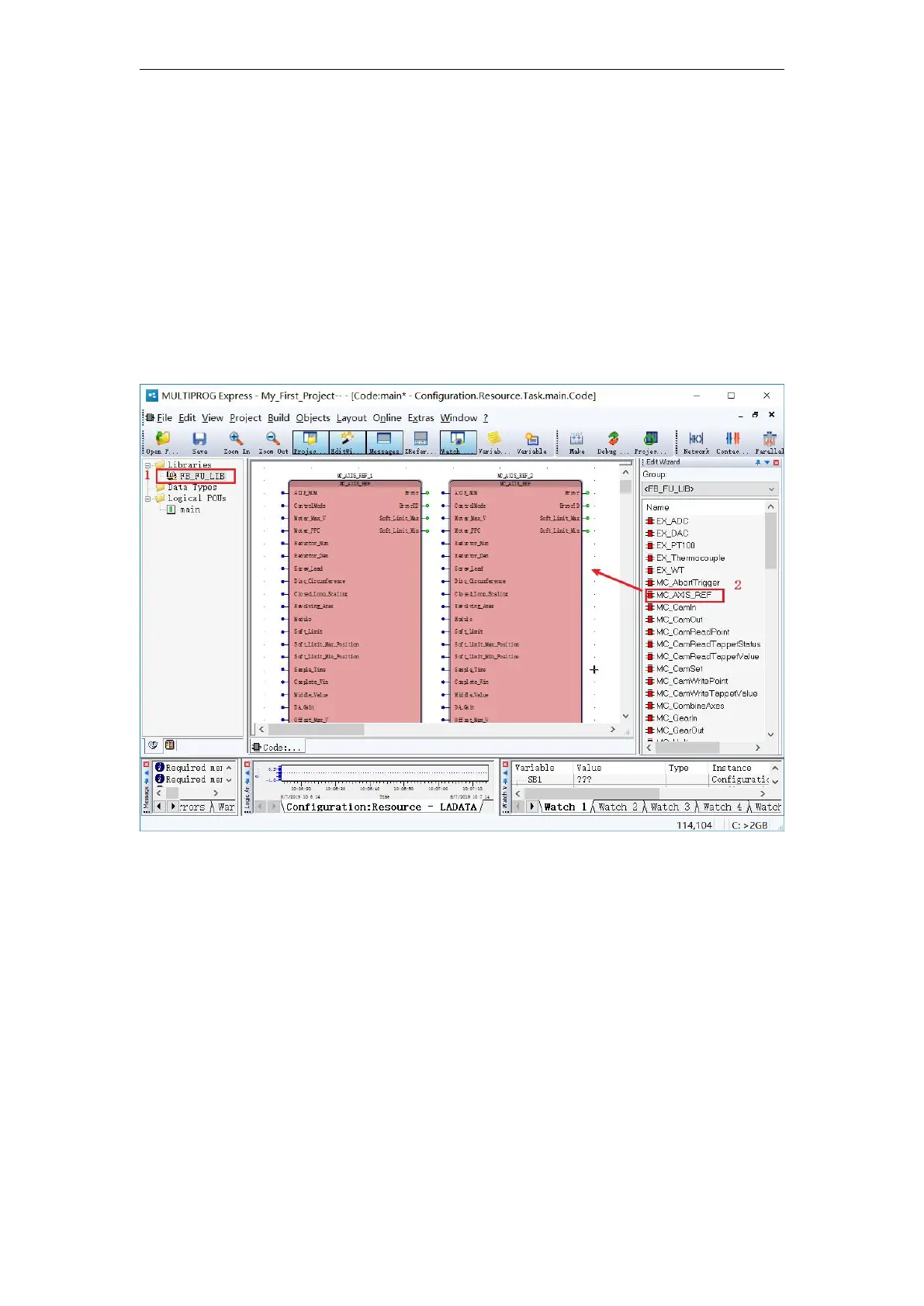 Step 1: Enter the programming interface, select the “ MC _ AXIS_REF ” block in