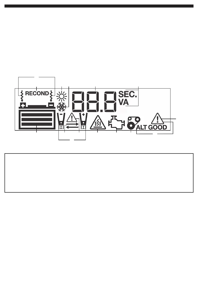 F. Seconds/Voltage/Ampere Indicator N. Reverse Polarity Icons