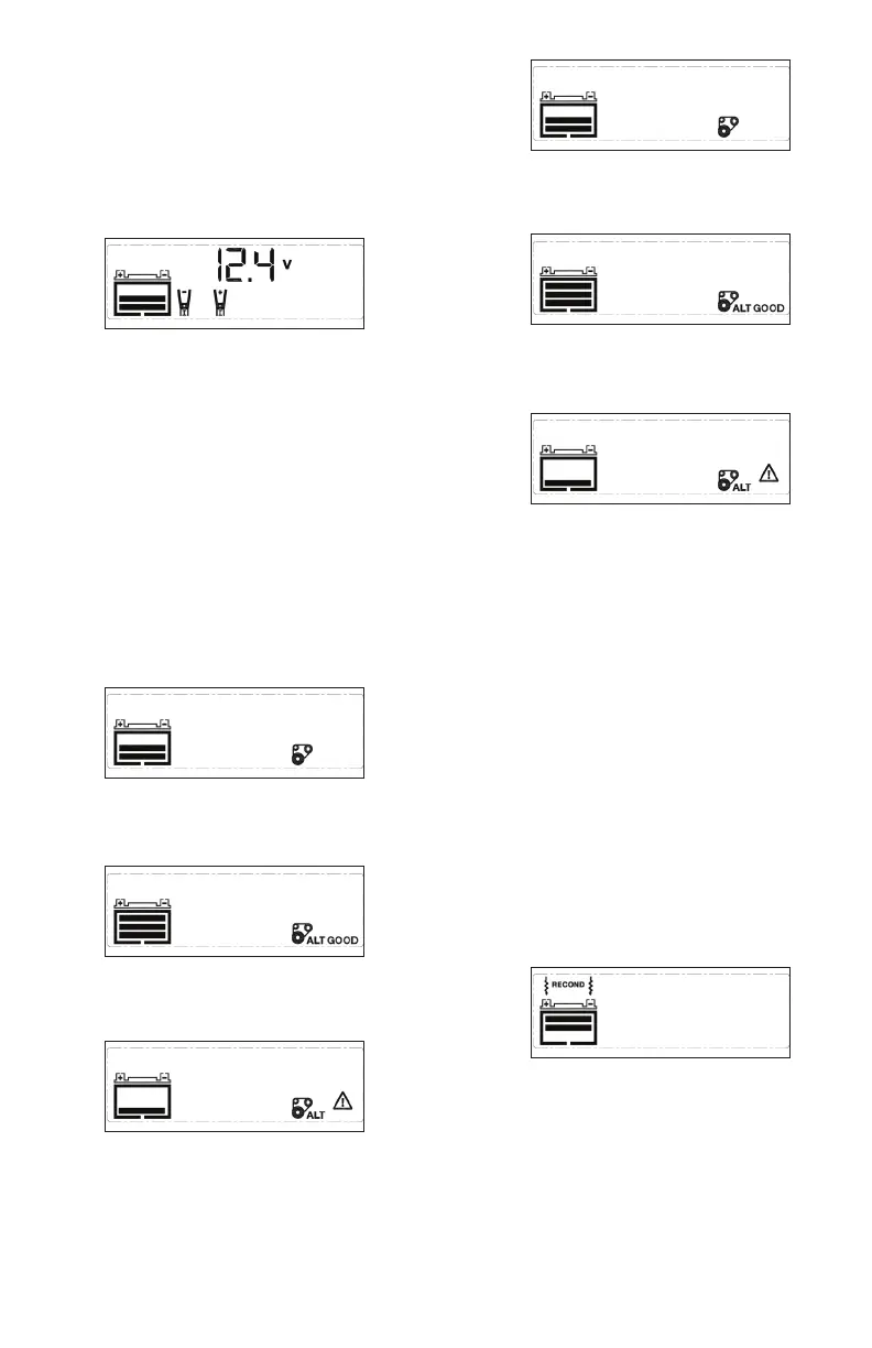 The Fault Icon will flash. The Alternator Icon, “ALT” and the Battery