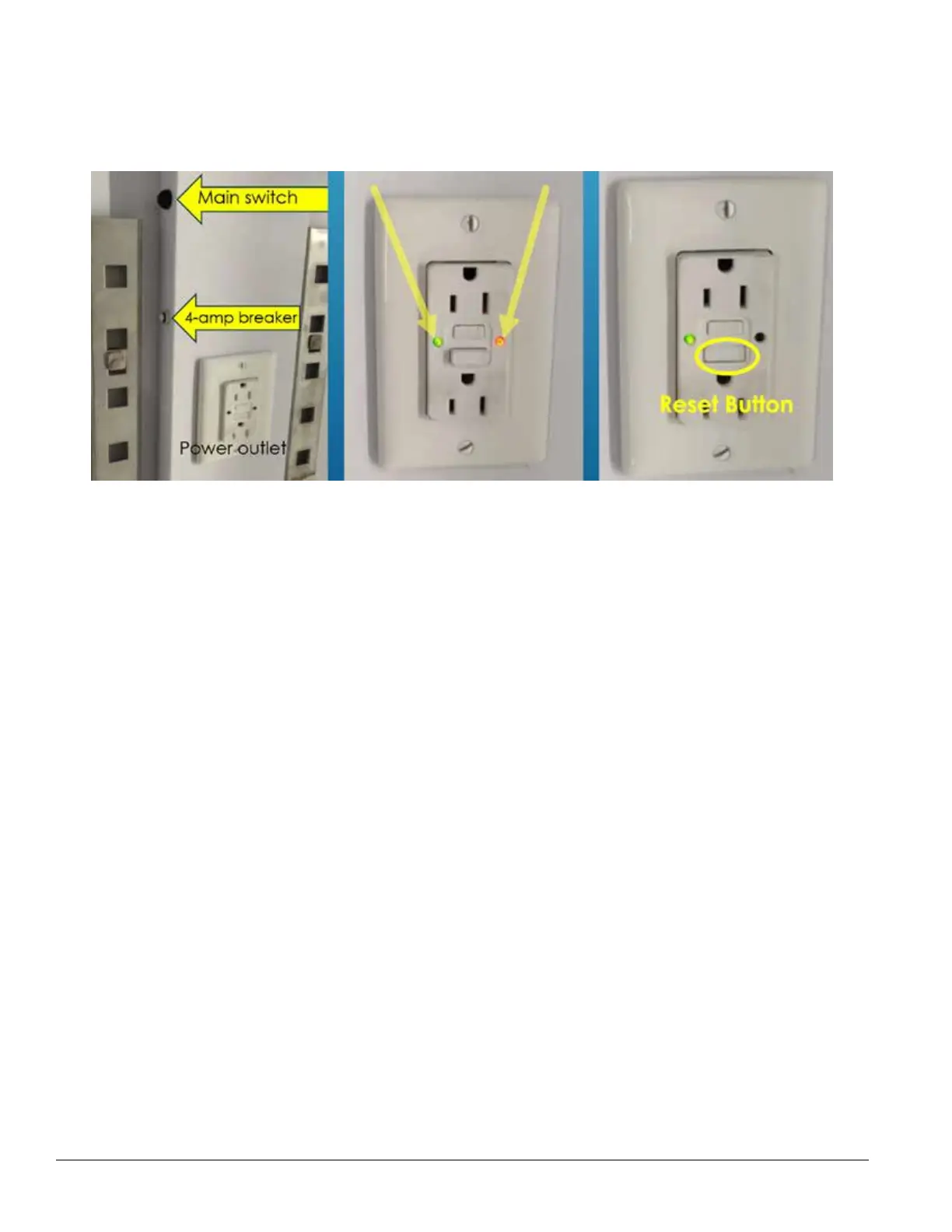 3. To energize the unit, press the main power switch (shown below) and verify the 4-amp breaker is not