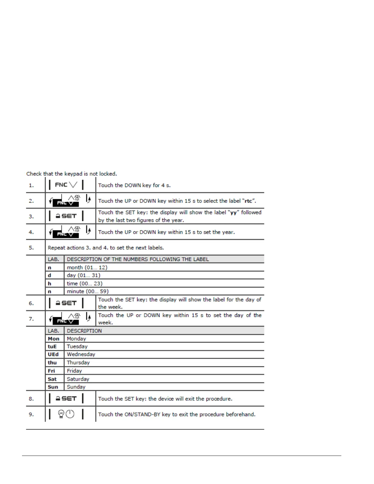 “Loc”. To unlock the controller press the SET key for 1 second until “UnL” is displayed. The controller is now