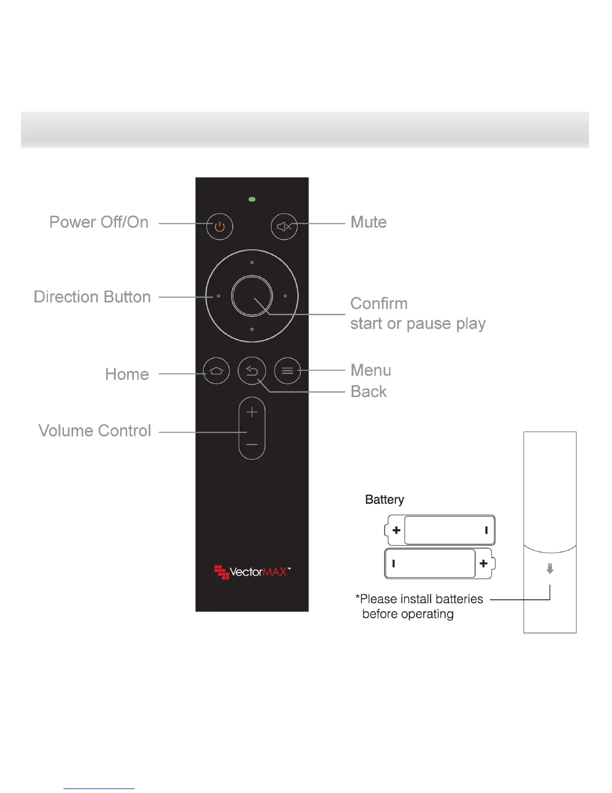VECTORMAX A12E - Remote Control Layout