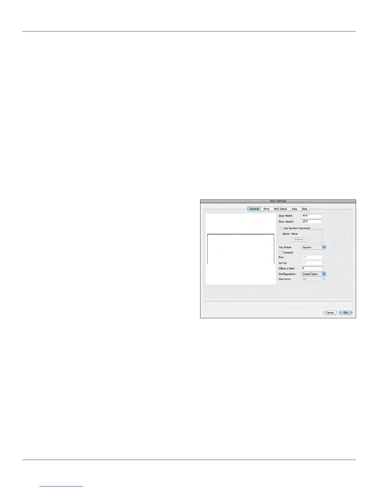 the size or the swing direction. When the Door Settings dialog opens, select the General tab and set the opening to 40’ [12.192m]