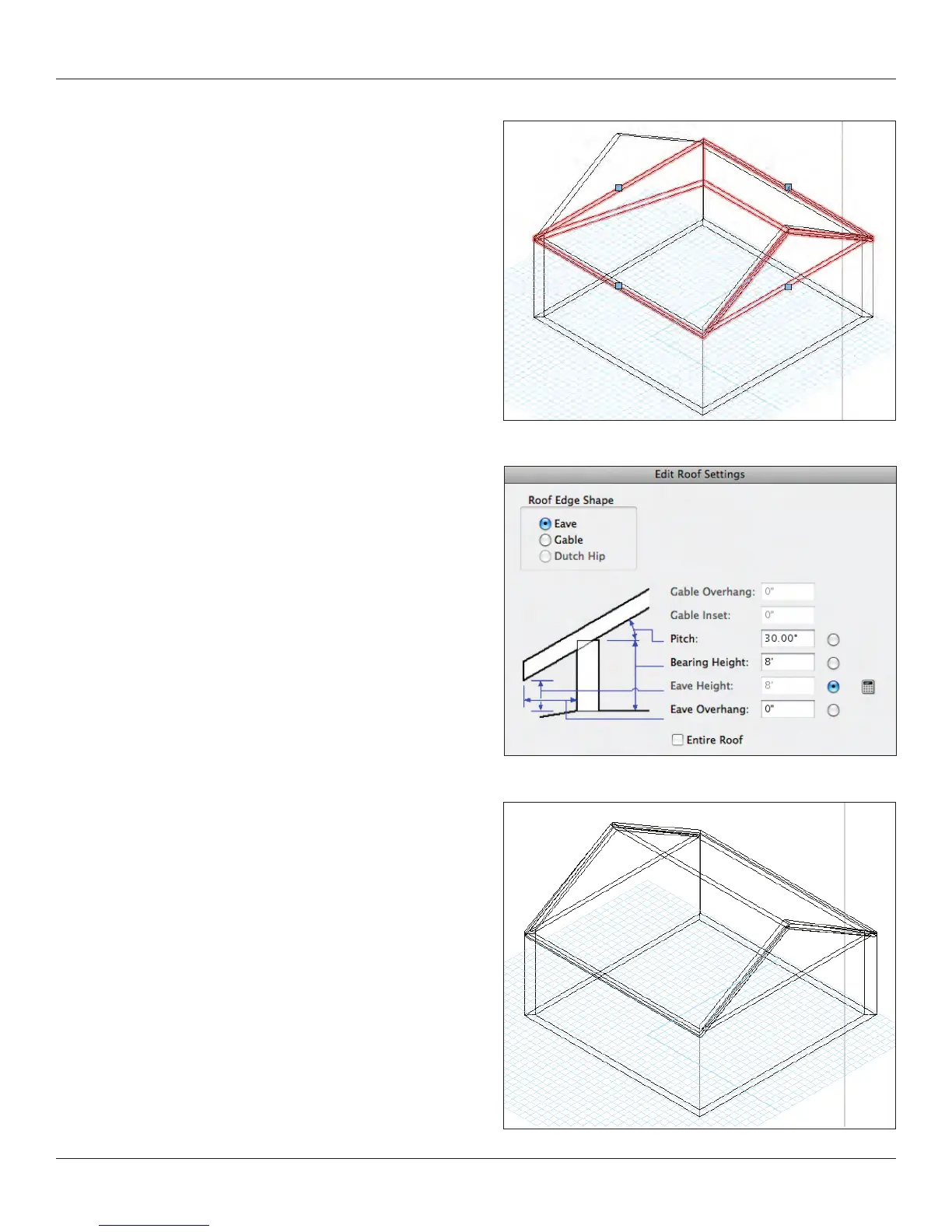 purposes, accept the defaults and Vectorworks will build a hip roof